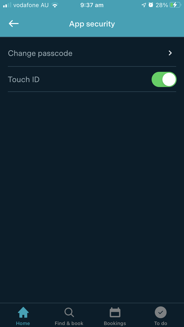 If you activated Touch ID, you can close your app down and reopen it to log in using touch ID and see how it works. If you change your mind, you can toggle the Touch ID setting off in your app. To do this, click the user icon in the top right hand corner of the app to go to your account settings.