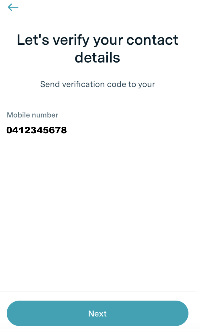 Once confirmed, you will need to verify your details by sending a verification code to your primary profile's mobile number.