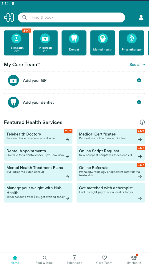 Once you have entered these login details and hit the 'Agree and Continue' button, you will be returned to the Healthengine Home screen and your account has been created!