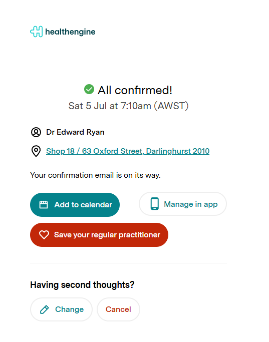 When booking online with HealthEngine, if your booking is successful, you will receive an email confirming your appointment.