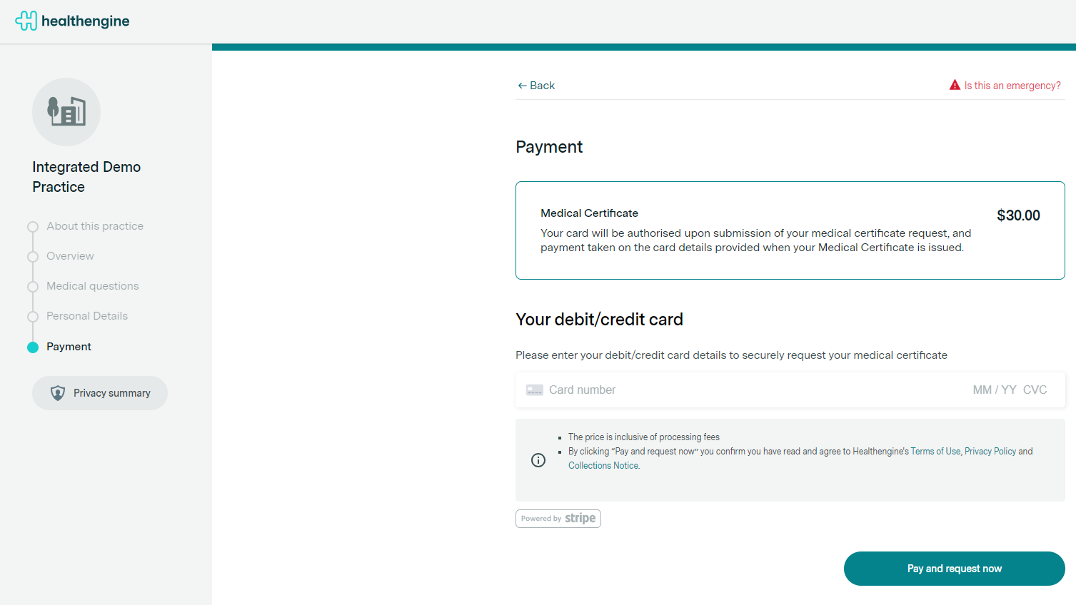 If you are successful, you are asked to enter your personal and contact details and payment details. While you enter your payment details when you make a request, you are not charged for your Medical Certificate until your request is approved. If it either expires or is rejected, you do not incur a fee.