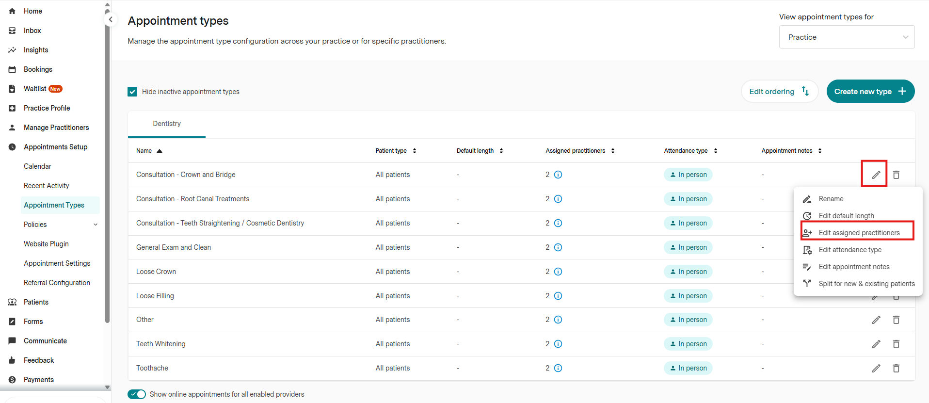 - How to Assign a Pre-existing Appointment Type to a New Practitioner