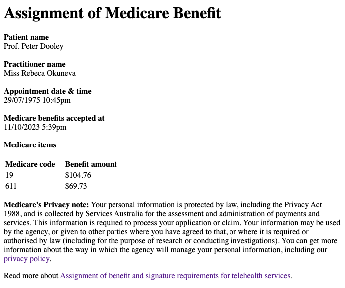 Verbal consent should only be used for telehealth consultations where the patient’s written or emailed agreement to assign their Medicare benefit cannot be obtained.