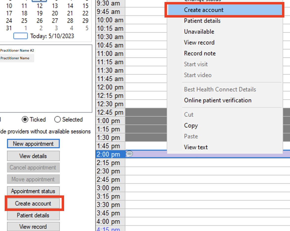 2. Locate the relevant appointment in your Pracsoft appointment book