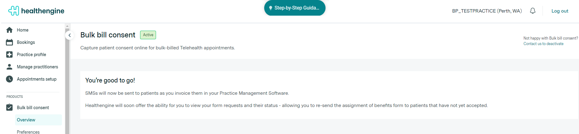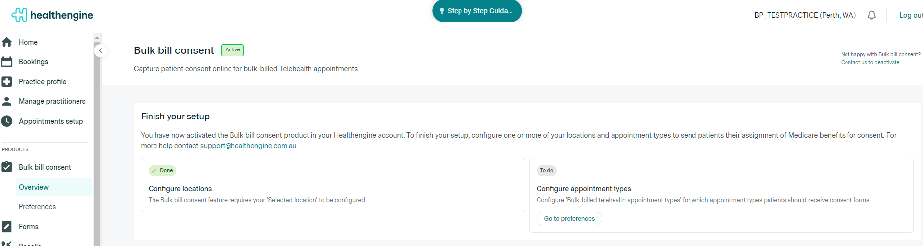 Please Note: You can edit the appointment types you've enabled for this product at any time through the 'Preferences' section of your Bulk bill consent product in the left-hand side menu.