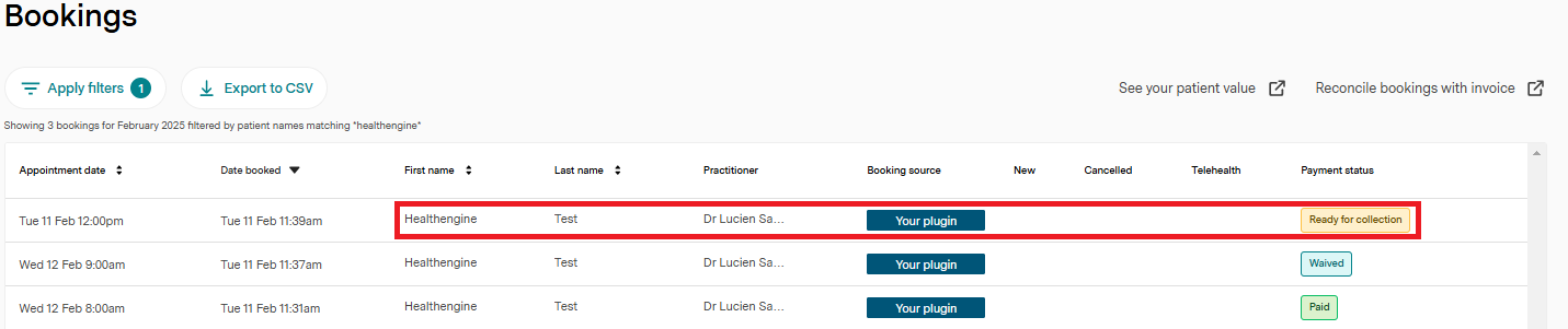 The ability to collect a payment for post paid appointments is unavailable until 1 hour before the appointment start time, and is available for collection for 28 days post appointment start time. You can see the bookings status in Practice Admin > Bookings > Bookings