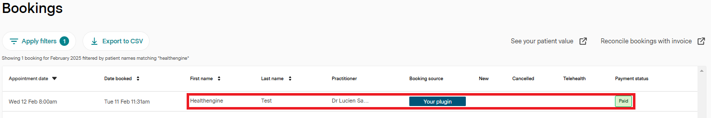 - The bookings tab in Practice Admin will update accordingly to reflect the cancellation and the refund