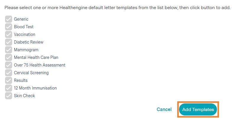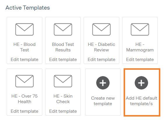 From here, click the 'Add HE default template/s' button then select the default Letter templates you'd like to add before pressing 'Add Templates' - this will add the chosen templates to your 'Active Templates'.