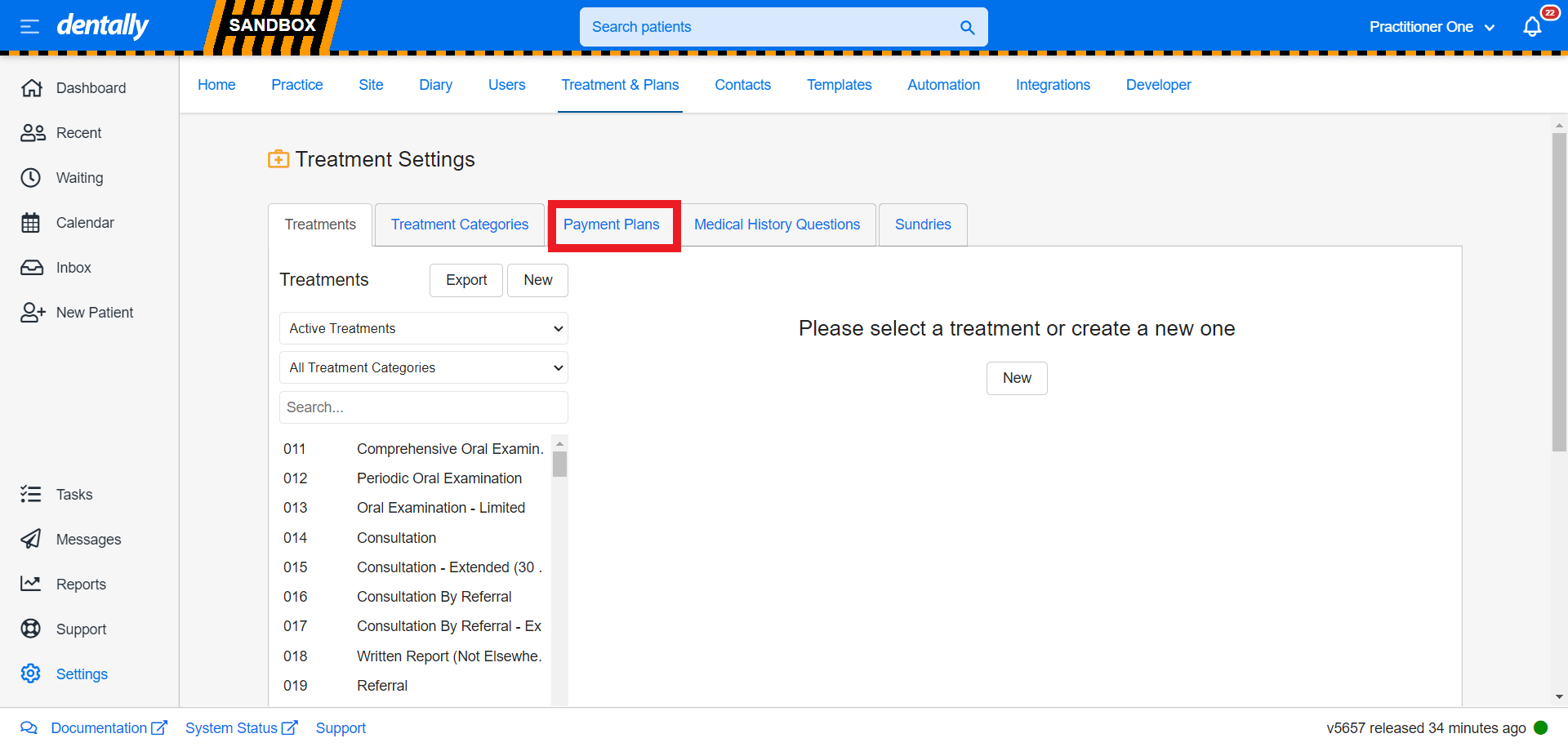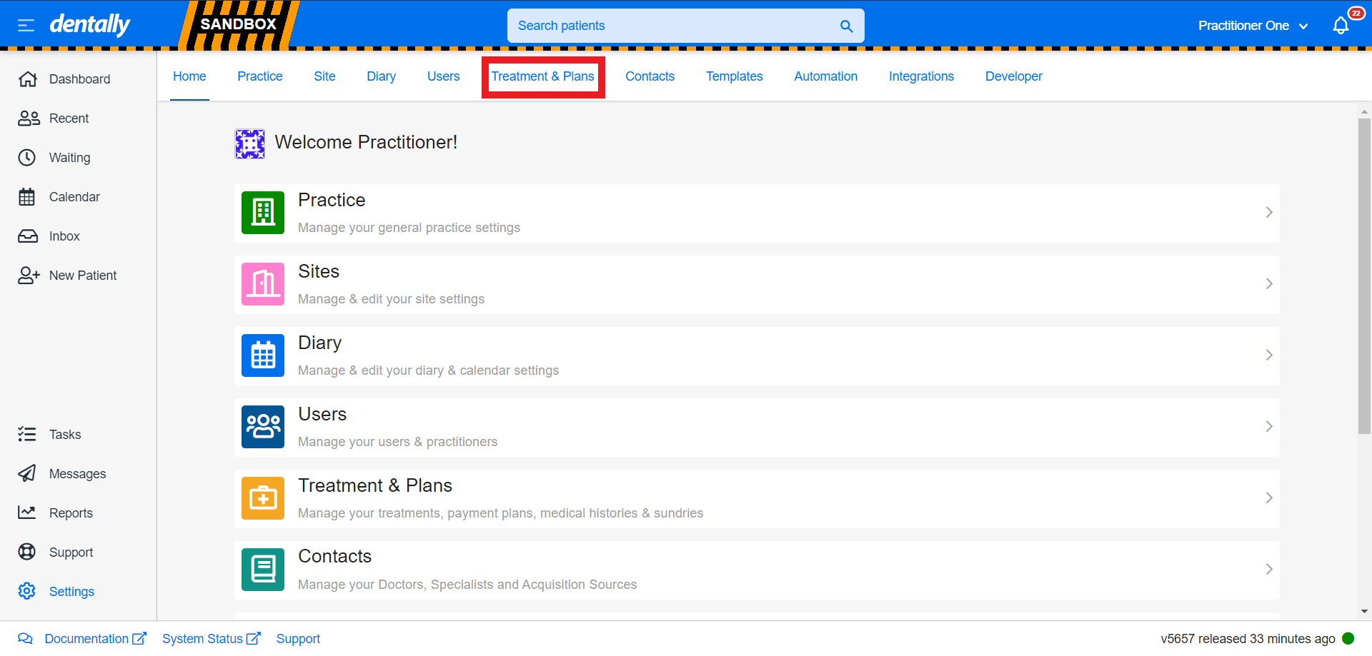 From the Settings dashboard, click the ‘Treatment & Plans’ tab.