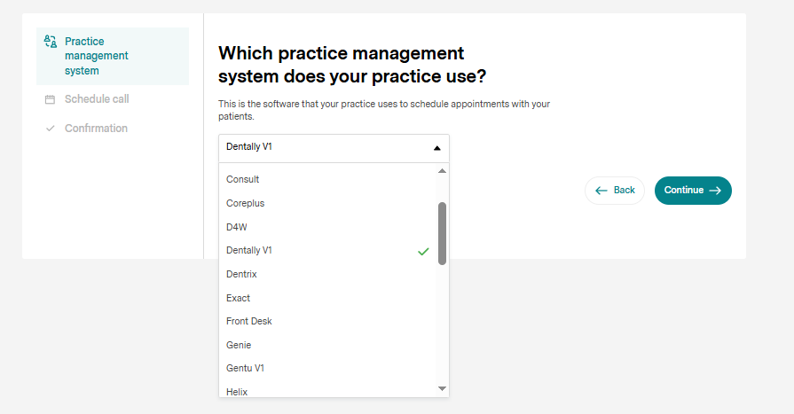 Then click on Let's Go and select Dentally V1 from the list and hit continue