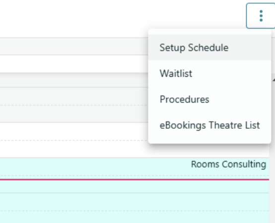 menu icon in the top-right corner. Select Setup Schedule to change to the schedule view of the Appointment Book and click and drag to select the block of appointment slots you would like to apply the schedule to: