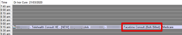 - Displays what Telehealth appointment type the patient has booked in for in the appointment display.