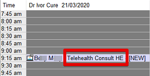 - Applies a label of 'Telehealth Consult' into the appointment display.