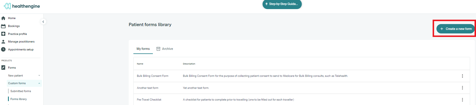 - Go to the Forms section of your Practice Admin portal-> Custom Forms -> Forms Library