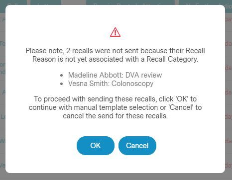 If you have selected multiple recalls and there is more than one recall type without an associated category, you will see the following pop-up: