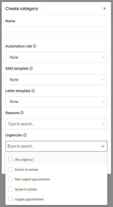 The next step is to add your recall reason(s) and/or urgencies. As an example, you may want to create one category for all results and another for all clinical reminders. If so, you could add all urgencies except the “(no urgency)” urgency to the results category and only the “(no urgency)” urgency to the clinical reminders category. However, if you want to break it down more specific than that - say, to have a category for Over 75 Health Assessments, specifically - then you can achieve this using a combination of reasons and urgencies. Note though that this can become complex, as described in this related article. Please refer to the linked article just above if you get stuck, or reach out to our friendly Support Team.