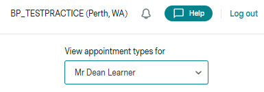 The second 'xxxxx' is the individual Practitioner ID. This can be found in the URL of your practitioner's appointment types page in your Practice Admin portal. First, select your practitioner from the drop-down menu as shown.