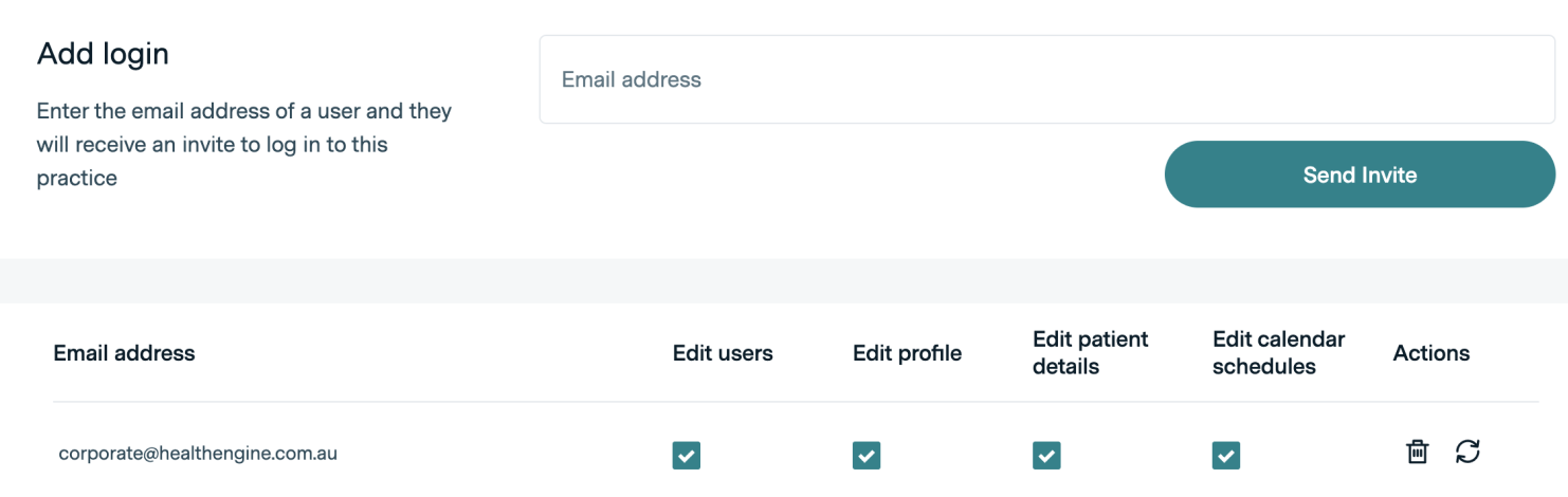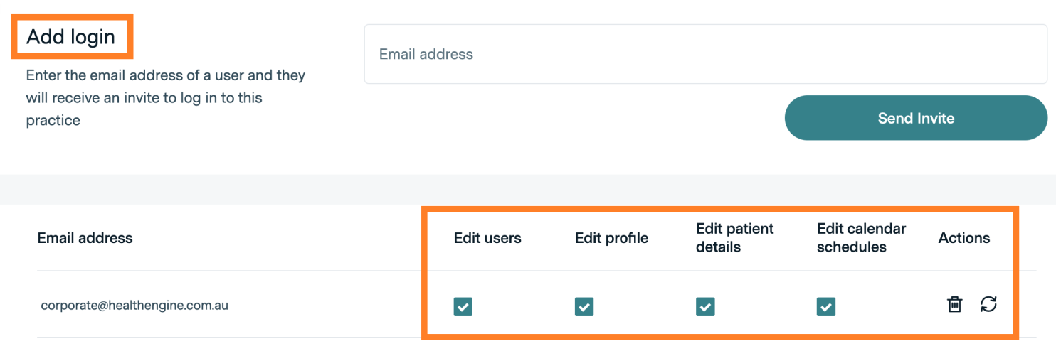 This article will summarise the logins and permissions page in Practice Admin under Account.