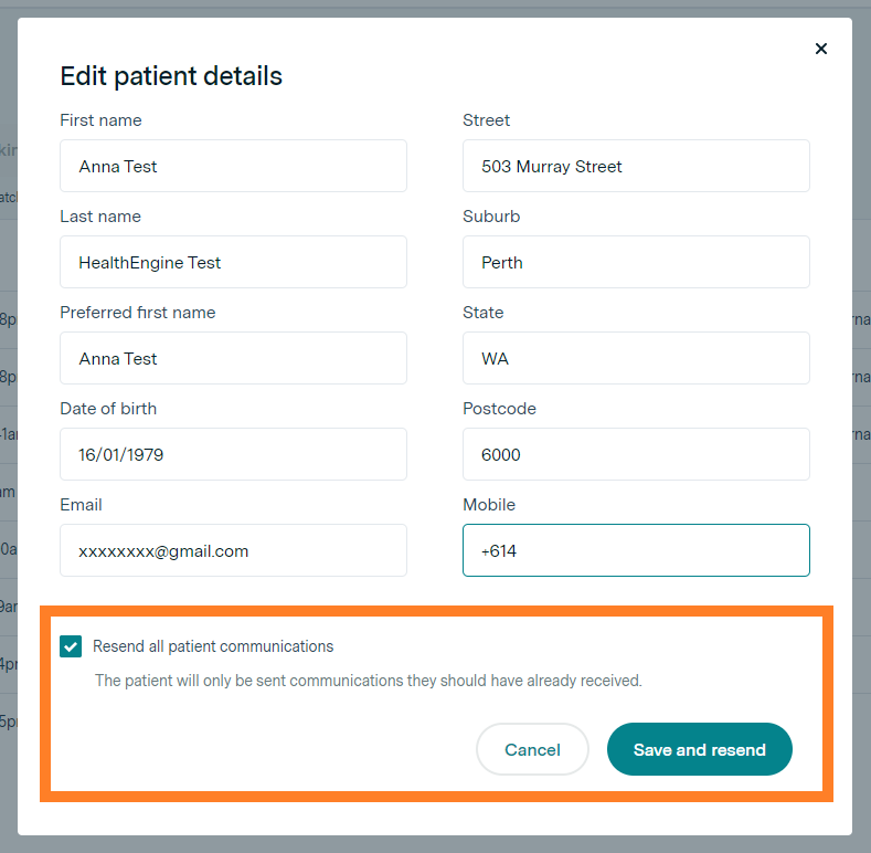 Once you have made the changes to the patient's details, there is an additional option to resend any relevant communication to that patient.