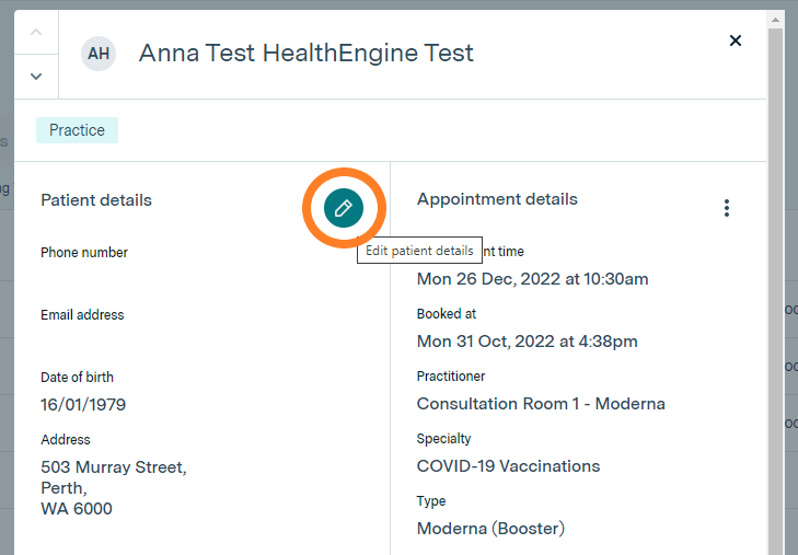 Now, when you click on the patient booking details, you will see the pencil icon allowing for changes to be made.