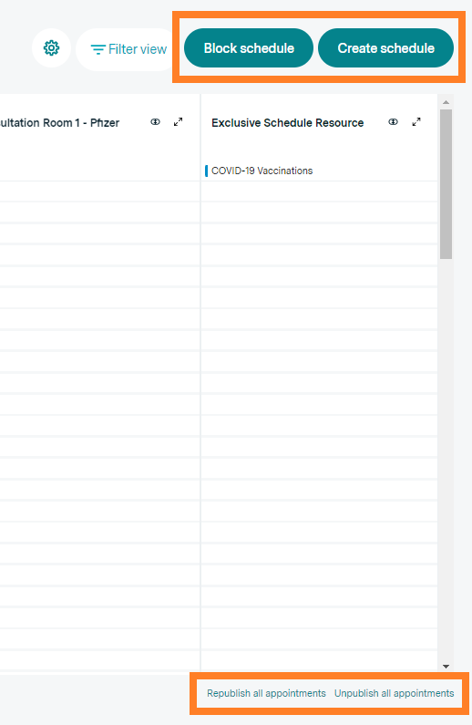 If this permission is unticked, the user won’t be able to see the option to create a schedule or block a schedule, or delete and make any changes to existing schedules. They also won't be able to see the option to republish and unpublish all appointments. The user will only be able to book, cancel and reschedule appointments.