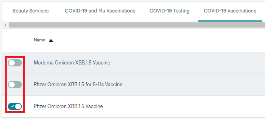 The simple toggle button, as seen in the images below, allows you to disable specific appointment types or entire specialties for online bookings.
