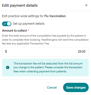 To set up pricing to display, simply locate the appointment type you wish to add pricing to and select the pencil icon. You'll then see the option for 'Edit payment details'.