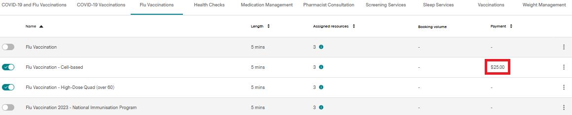 Once added, your pricing will display in the 'Payment' column for easy visibility.