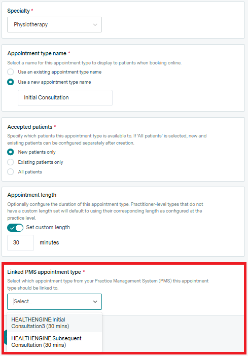 Adding a Linked PMS Appointment Type to a New Healthengine Appointment Type