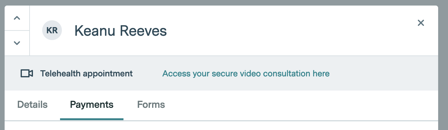 The patient booking modal has been updated to segment all the relevant information into their relevant areas. There is now a new payments tab in the modal, and all your patients payment information is stored there.