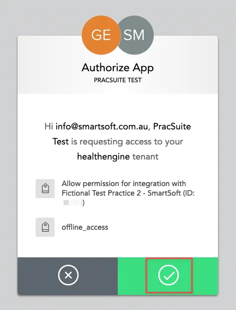 You should then be able to verify the integration by clicking on the tick icon at the end of the row, which will prompt you to log in to your Practice Admin portal and finalise the process.