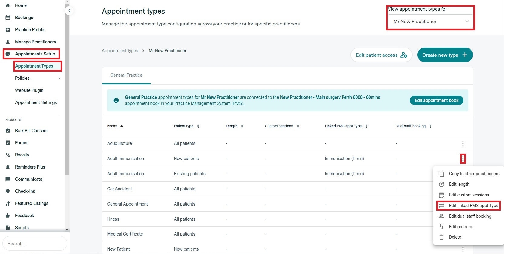 - All practitioner appointment types must be linked to a PracSuite appointment type.