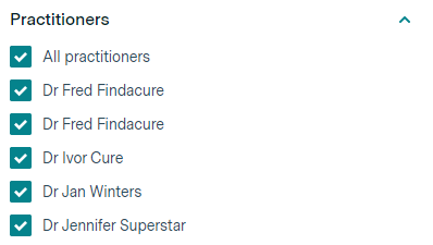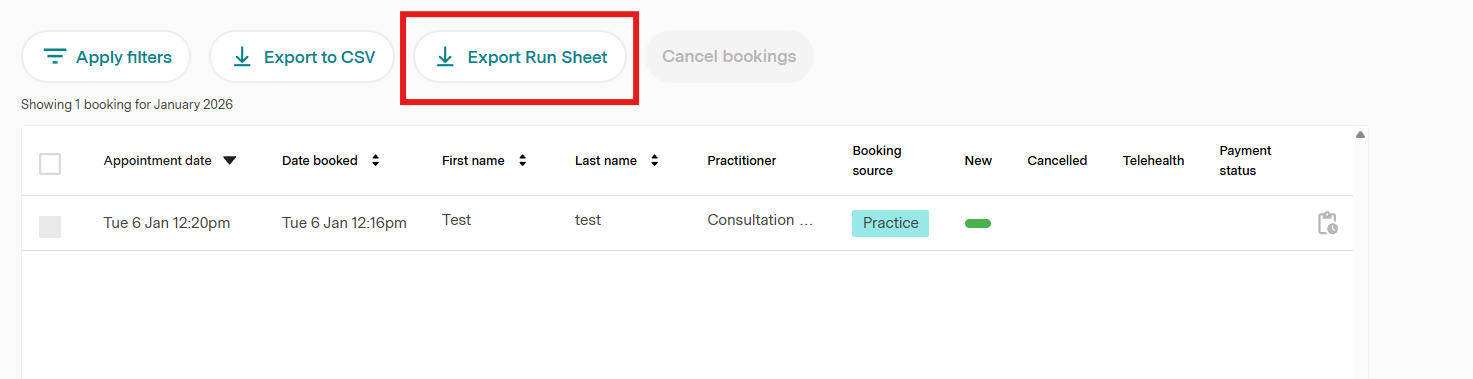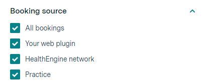 - Practice - bookings made by your staff or anyone who has access to Practice Admin.