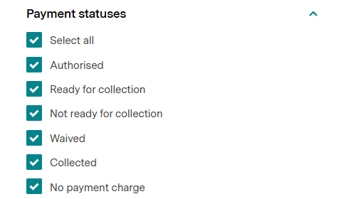 After you have chosen your date range or entered a customer's name, you have the option to narrow down your list even further by the following filters.