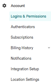 Your 'Account' section in Practice Admin gives your practice the ability to manage your logins, notifications and various other options! Under the 'Account' menu in Practice Admin, you'll find these options listed as seen in the image below: