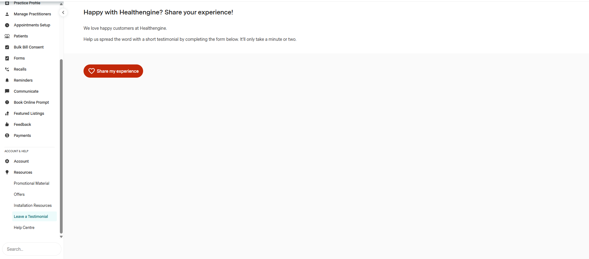The 'Subscriptions' section in Settings gives you a quick overview of the subscriptions and features you currently have active on your Healthengine account. From here, you can also select to change your tier and read our Help Centre article: Manage Your Subscription Products