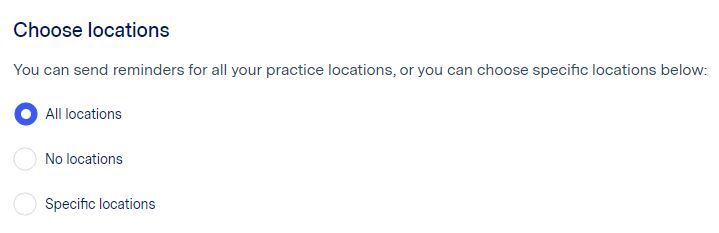 Please Note: If you select 'No Location', then your reminders will not send to patients - you can use this if you ever need to pause reminders for whatever reason.