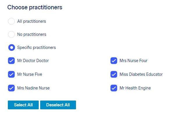 Please Note: Every time a new practitioner is added to your Practice Management Software, it will need to be ticked in here if you have 'Specific Practitioners' enabled.