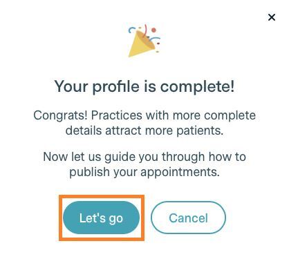 Please note: You will need to complete all the steps (cards) shown before you can proceed to publish appointments online.