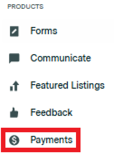 Within Practice Admin, navigate to the Payments tab under Products in the menu on the left-hand side: