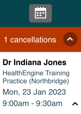 If a patient cancels an appointment they have booked through Healthengine, you will receive a notification on your Sidebar. Click the arrow to see the patient's details and then remove that availability from your own appointment book so the time is free for someone else to book.