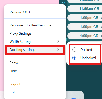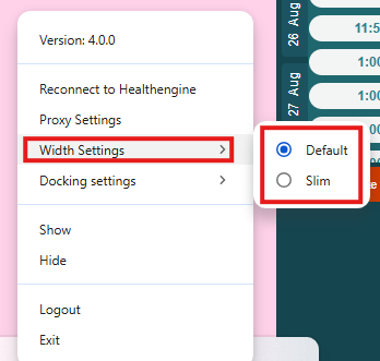 - Right-click on the white Healthengine icon to open the menu.