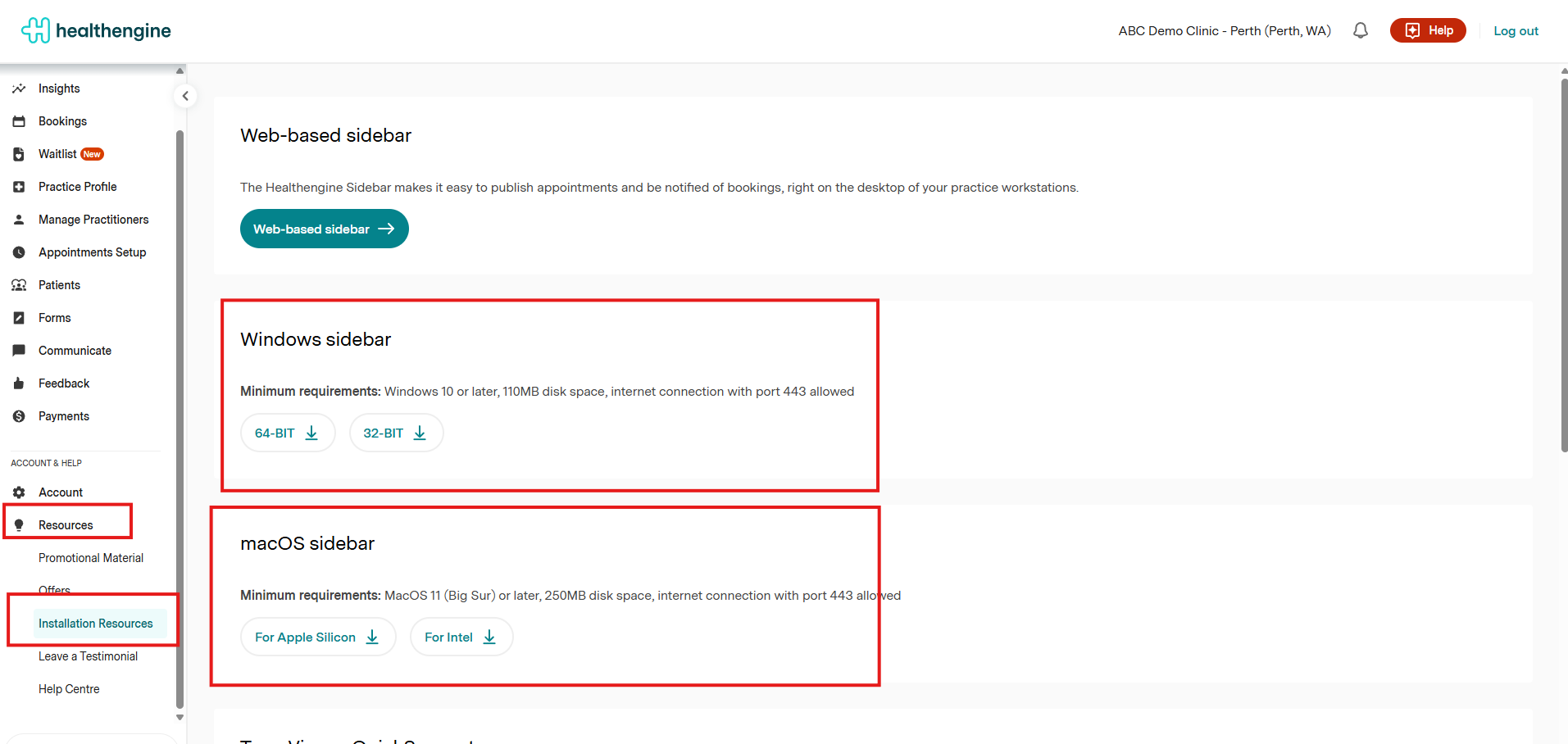 You can download the Sidebar from our downloads page here, or you can navigate to 'Resources' in your Practice Admin and then select 'Installation Resources'.