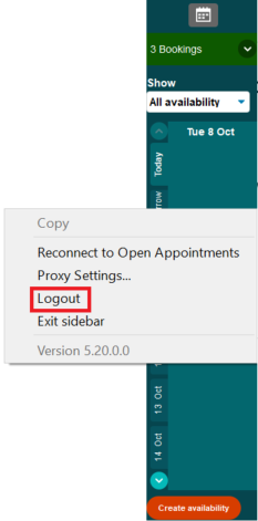 To log out of your Sidebar, right-click anywhere on the Sidebar and select logout. It is recommended that you leave the Sidebar logged in at all times; you may need to log out if you manage multiple practices.