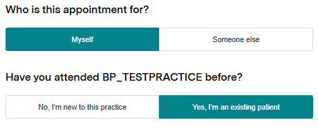The patient then enters their appointment details regarding who the appointment is for, and if they are a new or existing patient.