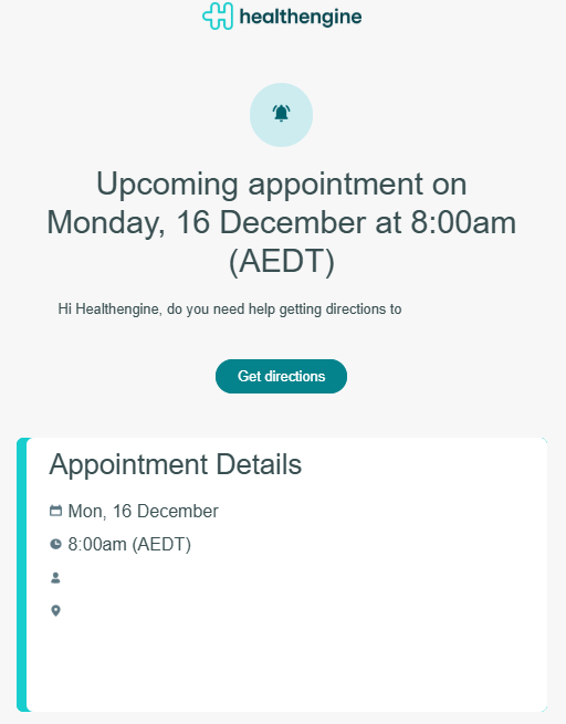 An email reminder is sent to the patient, provided they have a valid email address in their patient record in your Practice Management Software.