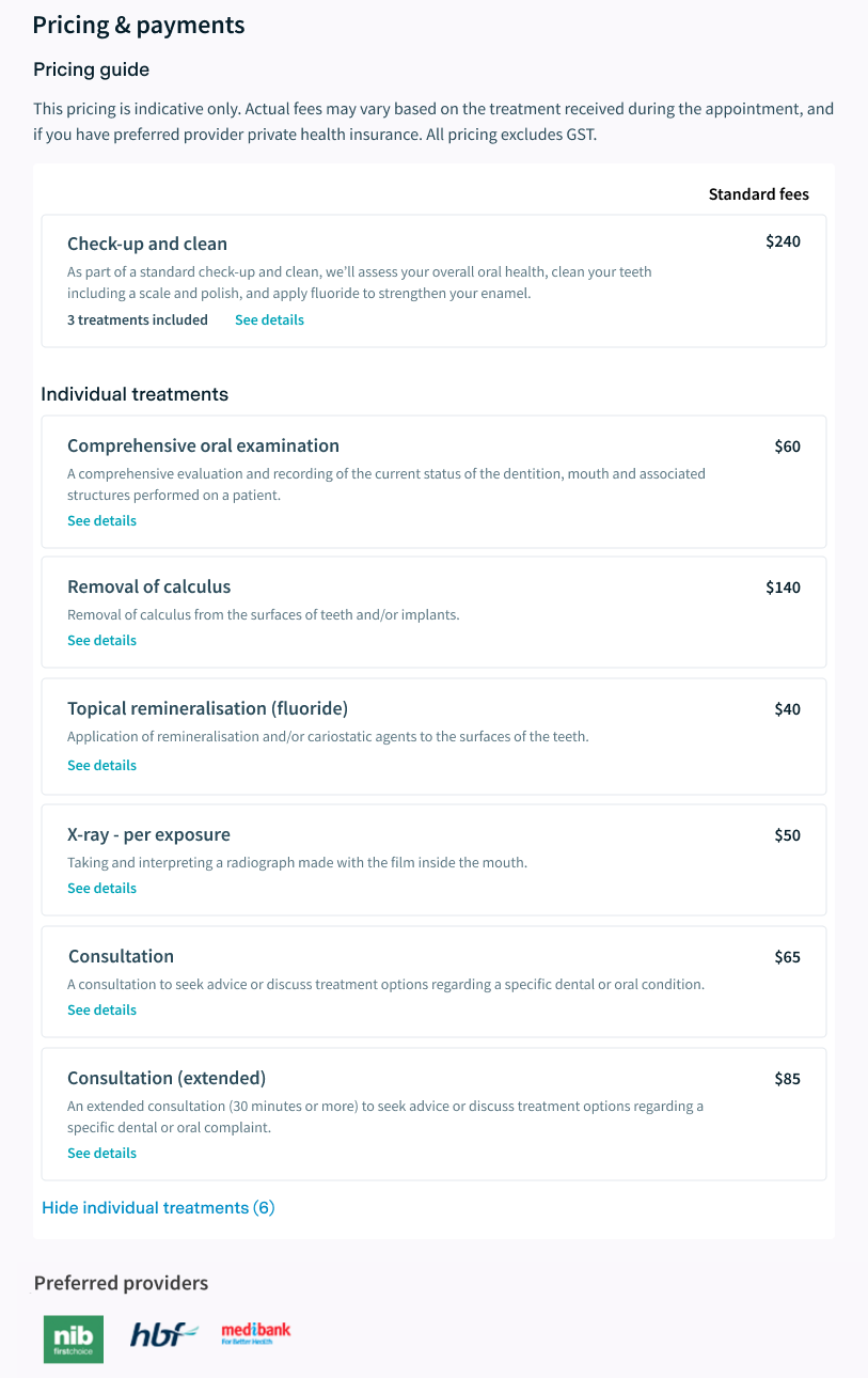 To provide better experiences for both practices and patients, we've upgraded the way practices manage and patients view dental treatment pricing on Healthengine profiles.