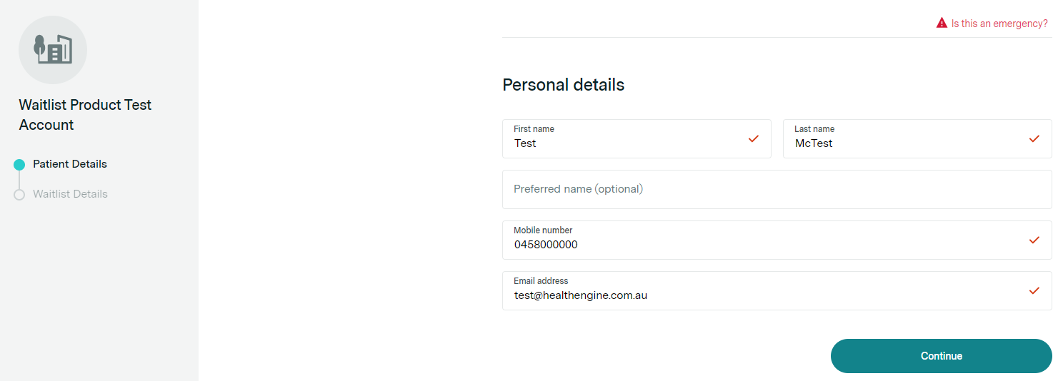 When a patient clicks on the waitlist button, they are taken to a page that allows them to add their details and submit a waitlist request.